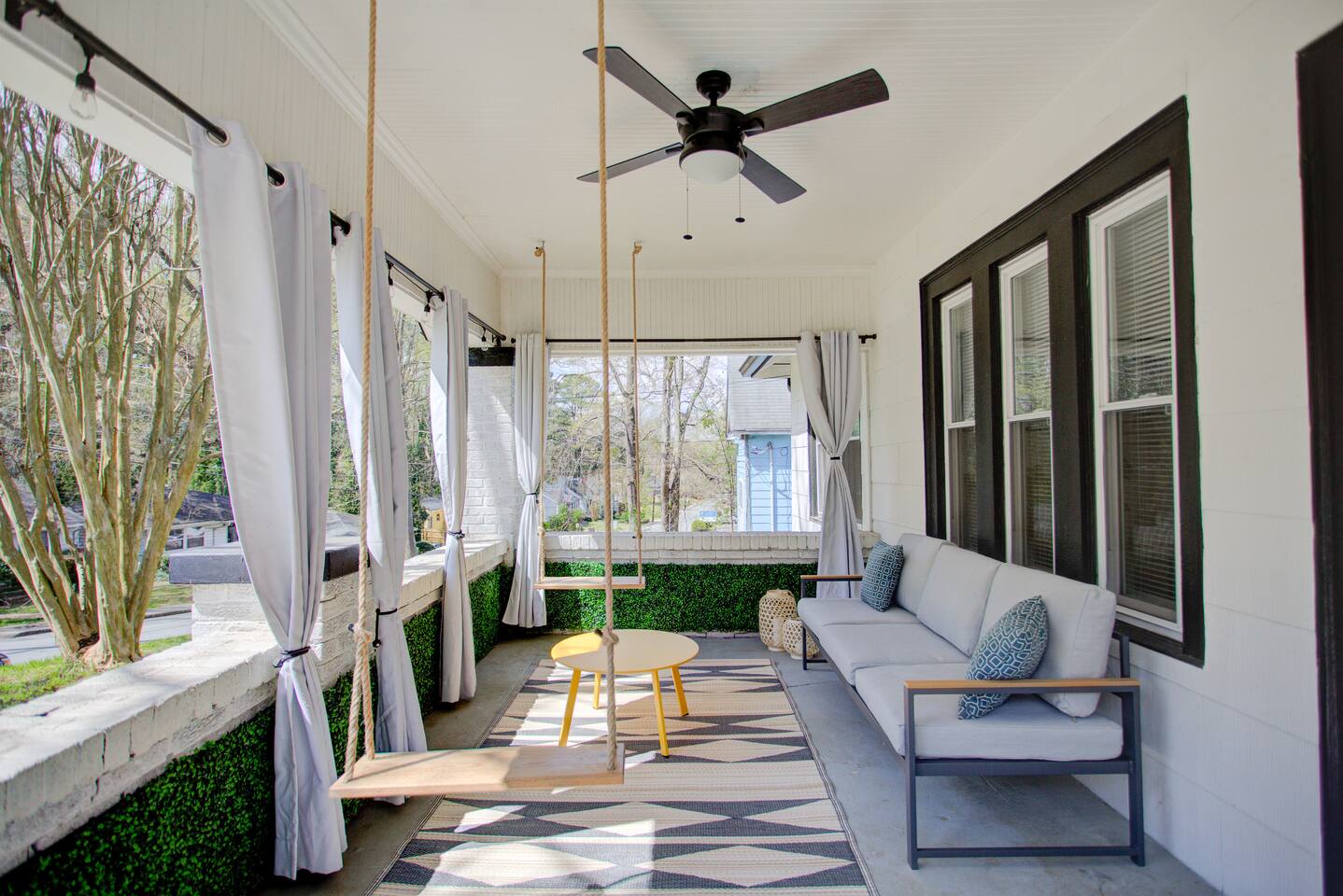 The Master suite features a King bed, 43” Roku Smart TV . Additional bedroom offers a Queen room with work station and 2 twins in the 3rd room. Family-friendly but not baby proofed (no baby amenities). Grove Park is an urban, evolving neighborhood; we encourage guests to research to ensure it matches their comfort level and travel style. The Location •Bankhead MARTA train station (.6 mi) •Westside Park/ Bellwood Quarry (.8 mi) •Mercedes-Benz Stadium (3 mi) •Georgia Tech (2.6 mi) •AUC (2.6 mi) •West Midtown/ The Interlock (2.8 mi) •Fox Theater (3.1 mi) •Atlantic Station (3.7 mi) •Downtown ATL (3.4 mi) •Buckhead (6.3 mi) •Six Flags (9 mi) •Truist Park (12.3 mi) •Hartsfield Jackson Int’l Airport (14.1 mi) 🌳 About the neighborhood: This home is located in Grove Park, an up-and-coming, urban Westside neighborhood close to the Beltline and many of Atlanta’s most popular attractions. While the area is experiencing lots of new growth, it still has a genuine city feel. ✨ Important note: If you’re looking for a super polished, touristy area, this may not be the best fit. We want you to feel comfortable and excited about your stay! If you’re easily spooked or prefer a suburban vibe, we recommend choosing a different area. 💬 Real talk from past guests: We’ve had some guests mention concerns about the neighborhood. We take your comfort seriously and always encourage you to research Grove Park to make sure it matches your expectations and travel style. Private entry and complete privacy Spacious front patio, with two rope swings and outdoor sofa for you to enjoy the Atlanta weather. Fully Stocked kitchen, with complimentary coffee and tea, microwave, toaster and blender. Ring Smart Home Security System. 4K Roku Smart TVs (please sign in to your own accounts). Washer/Dryer