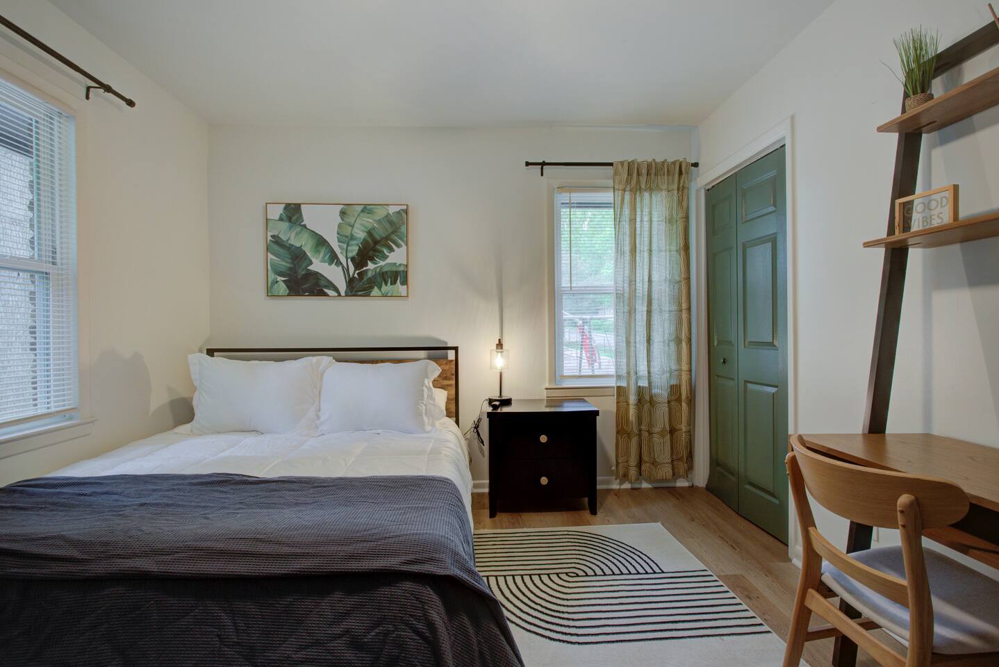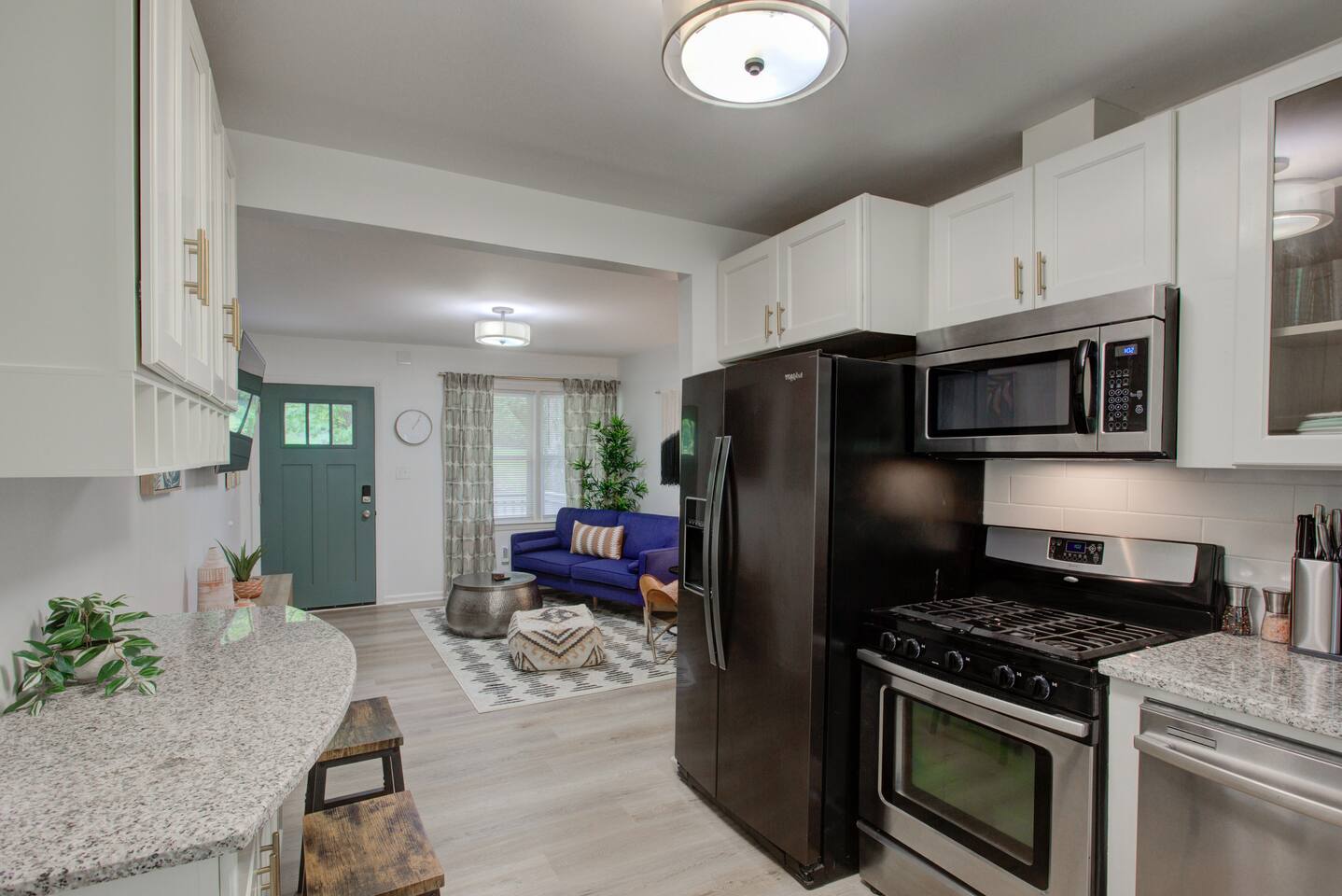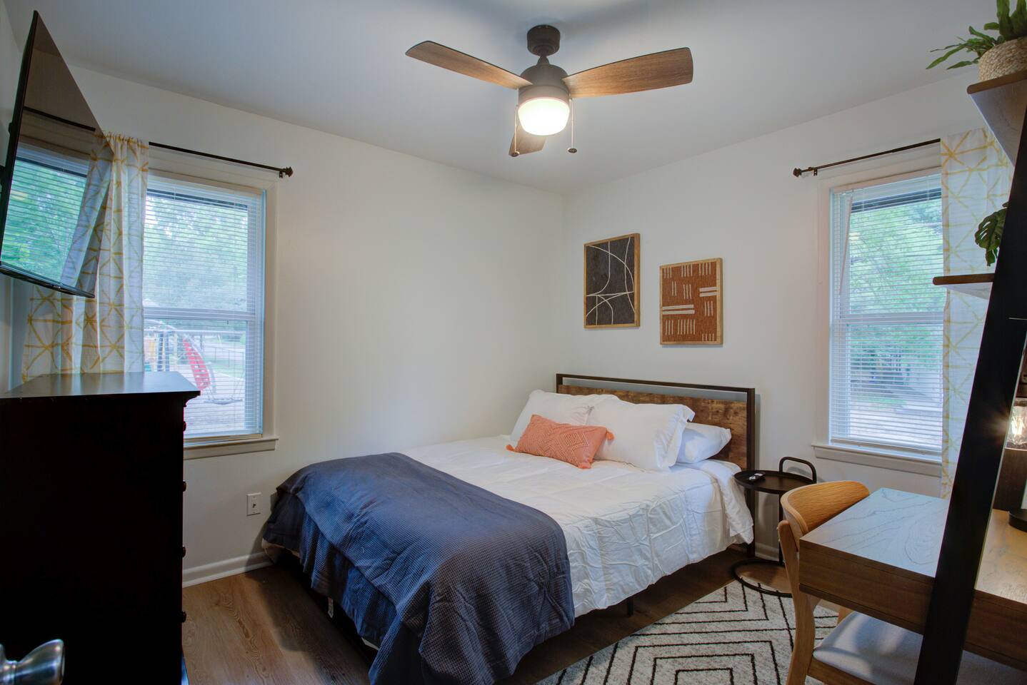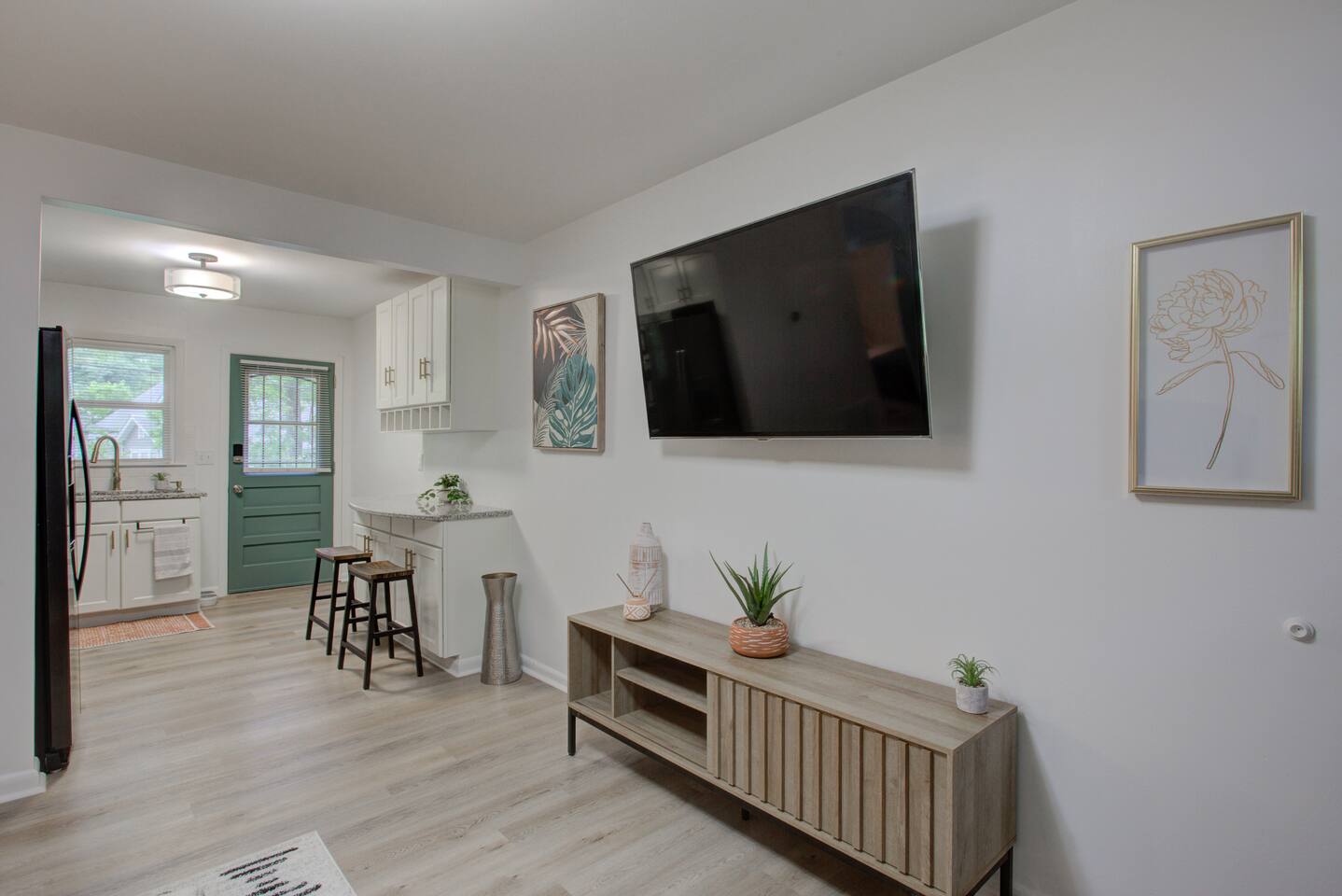 2 spacious bedrooms w/ 50" smart TV's, work station in both rooms. Cozy living room, stylishly decorated