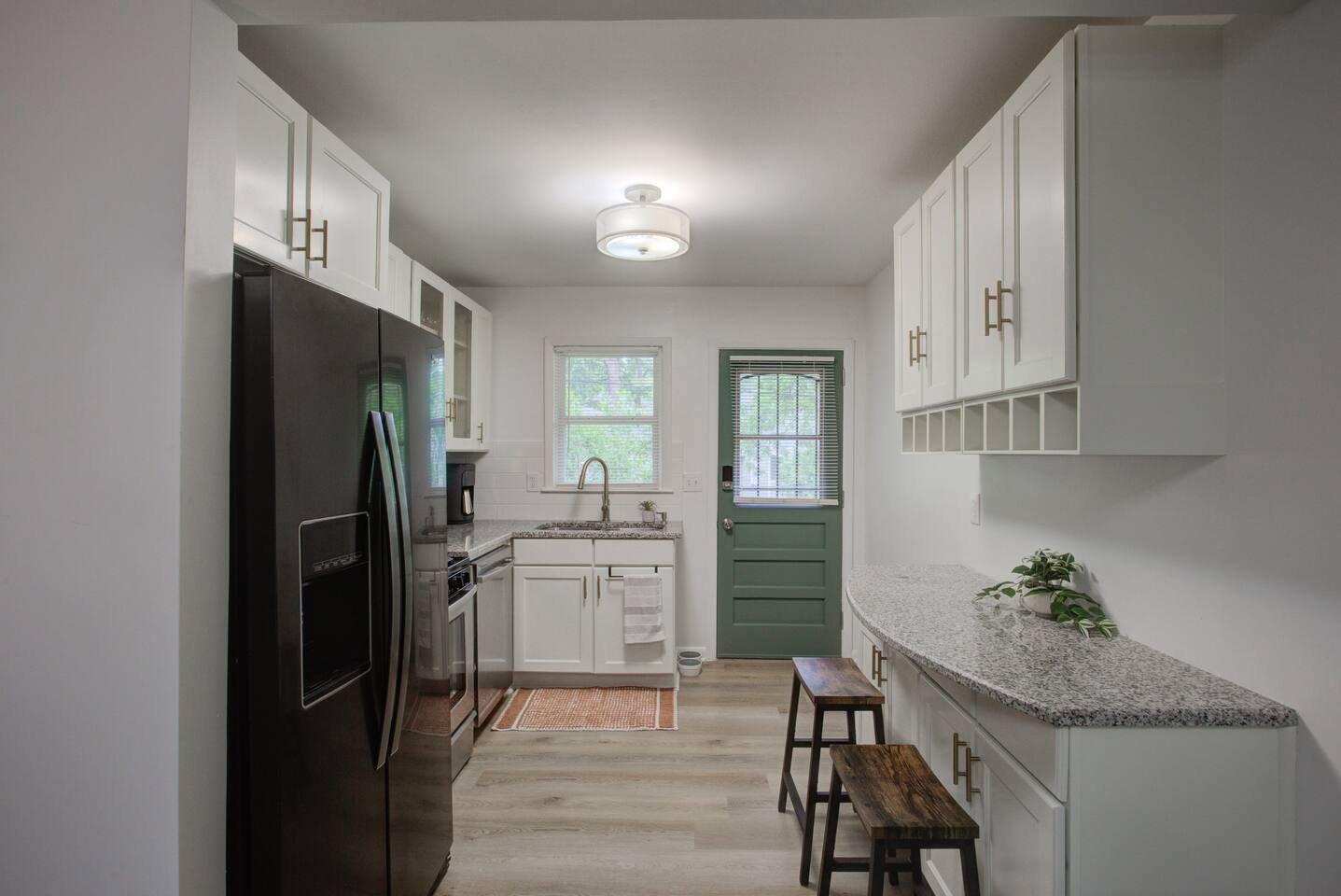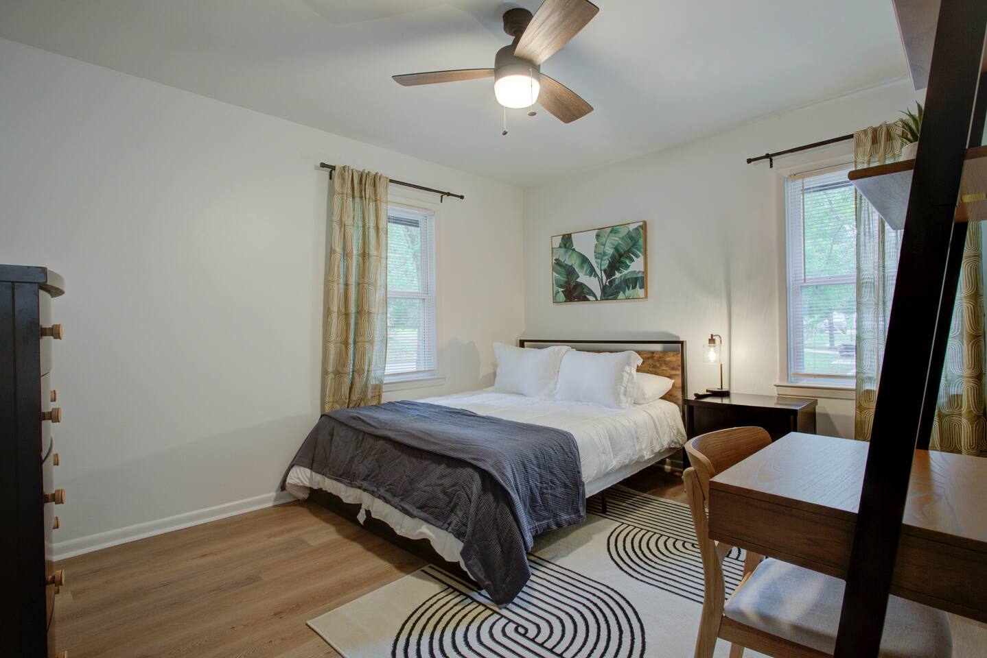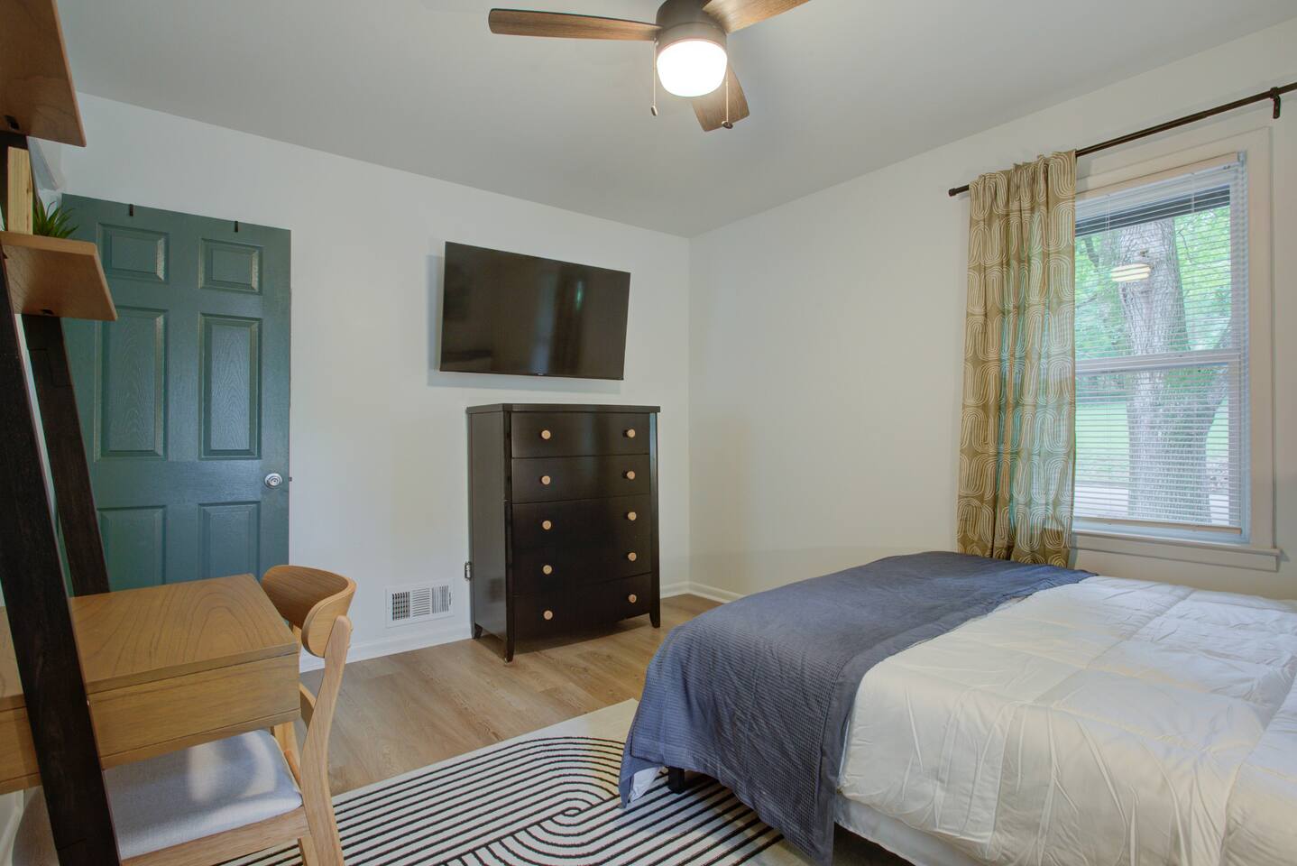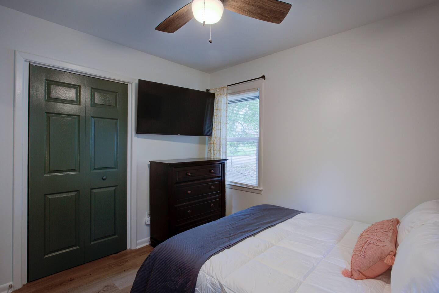 2 spacious bedrooms w/ 50" smart TV's, work station in both rooms. Cozy living room, stylishly decorated
