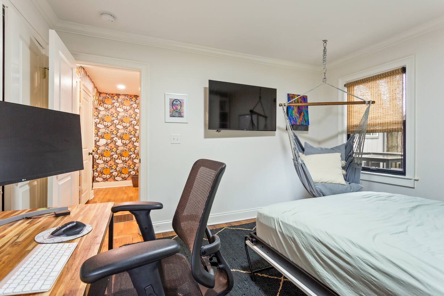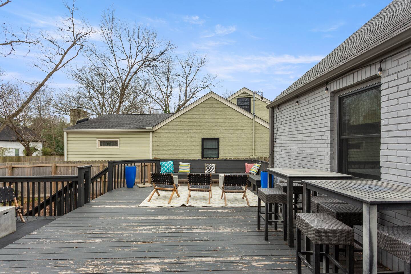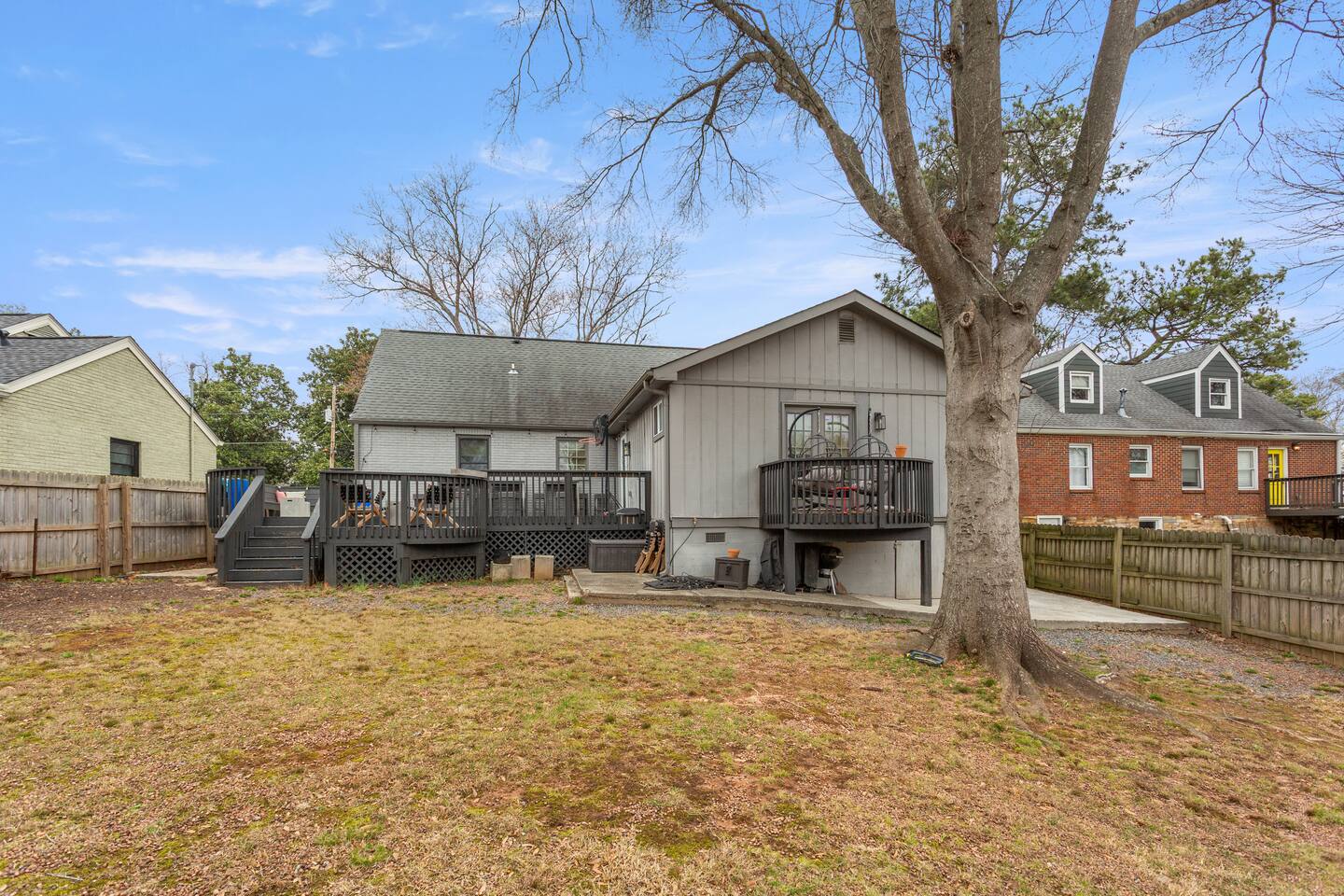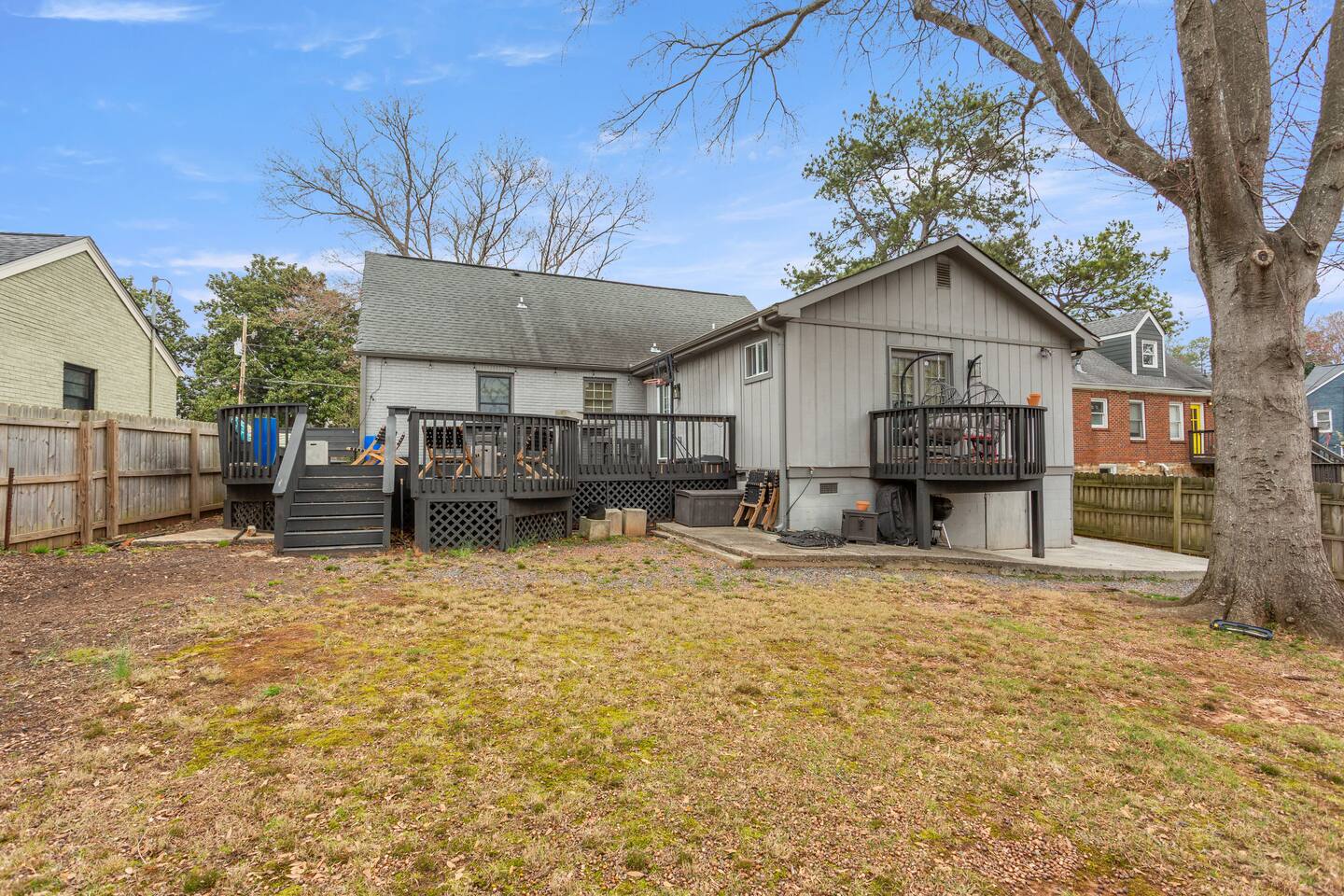 This thoughtfully designed East Atlanta home offers multiple living and work-friendly spaces, making it ideal for families, groups, and extended stays who want both togetherness and room to spread out. 🛋 Living Areas Bright, open main living space with comfortable seating for relaxing or gathering Open flow into the dining area and kitchen, perfect for shared meals and downtime Additional dedicated office / chill room with a couch and workspace — ideal for reading, remote work, or quiet time (Note: this room is not used as a sleeping space) 🍽 Kitchen & Dining Fully equipped kitchen with modern appliances and ample counter space Stocked with cookware, dishes, and essentials for longer stays Dining table suitable for family meals or working sessions 🛏 Bedrooms Primary Bedroom: Spacious and comfortable, designed for rest and longer stays Bedroom 2 & Bedroom 3: Well-appointed guest bedrooms with comfortable beds and storage Bedroom 4: Flexible bedroom featuring a bed and a dedicated workspace, ideal for guests who need a private work area 🚿 Bathrooms Clean, updated bathrooms with modern finishes Stocked with essentials to support extended stays 🌿 Outdoor Space The home features a huge backyard with plenty of room to relax, play, and enjoy time together. It’s a great setup for families or groups who appreciate having outdoor space during a longer stay. Large, private backyard Nice-size deck ideal for outdoor dining, morning coffee, or evening wind-down Comfortable space for family time, casual meals, and downtime between outings 🚗 Parking Convenient parking available for guests in driveway and on the street