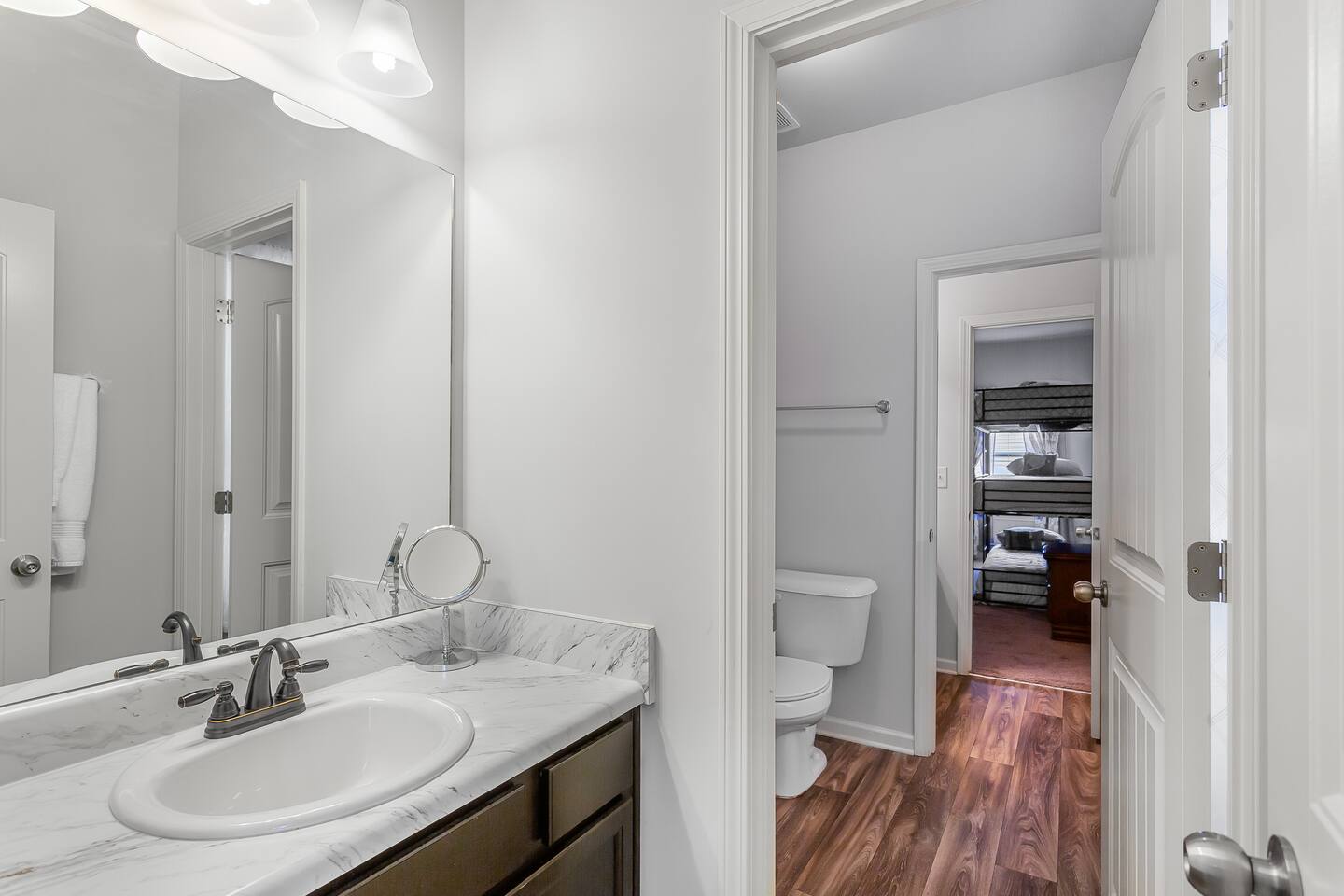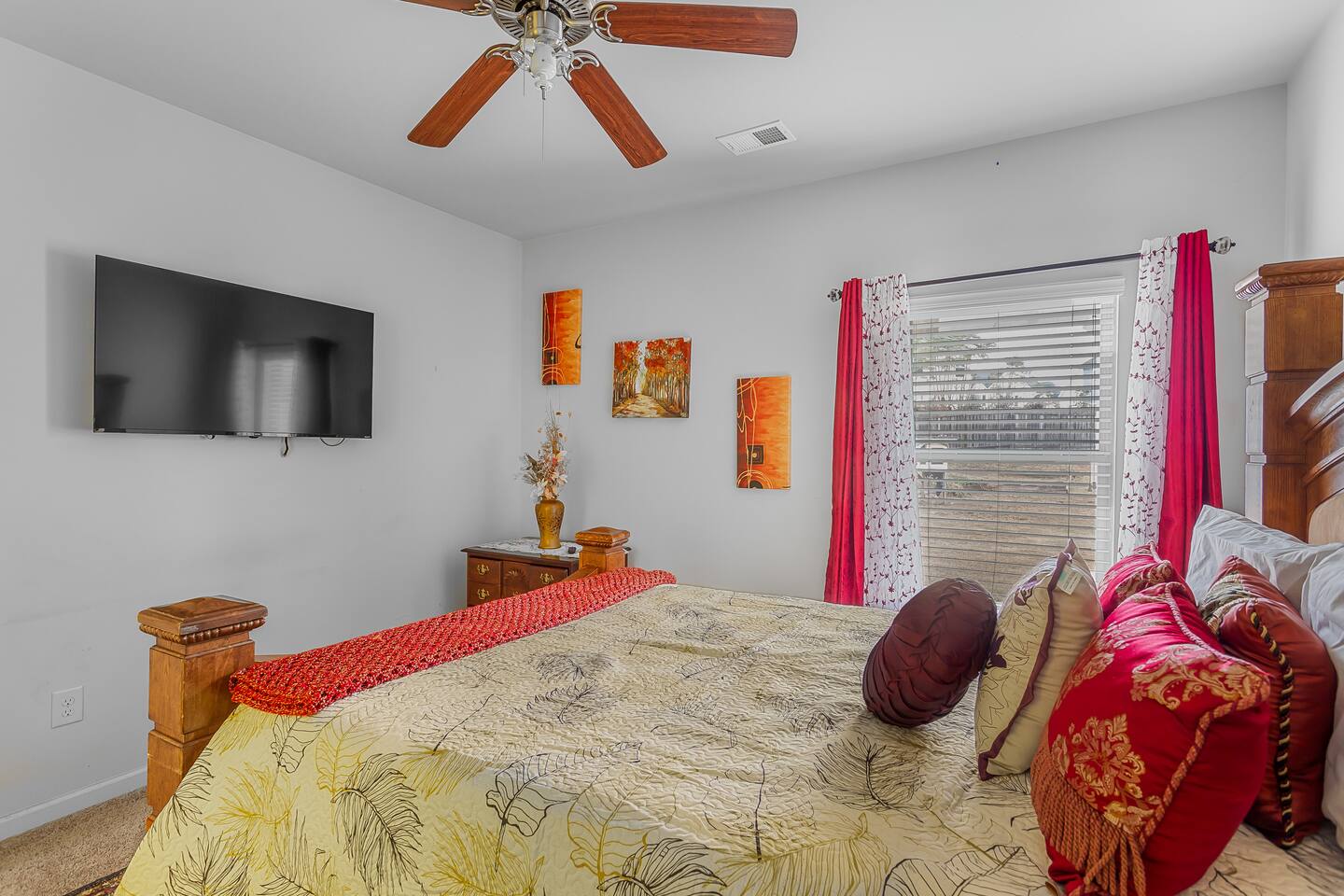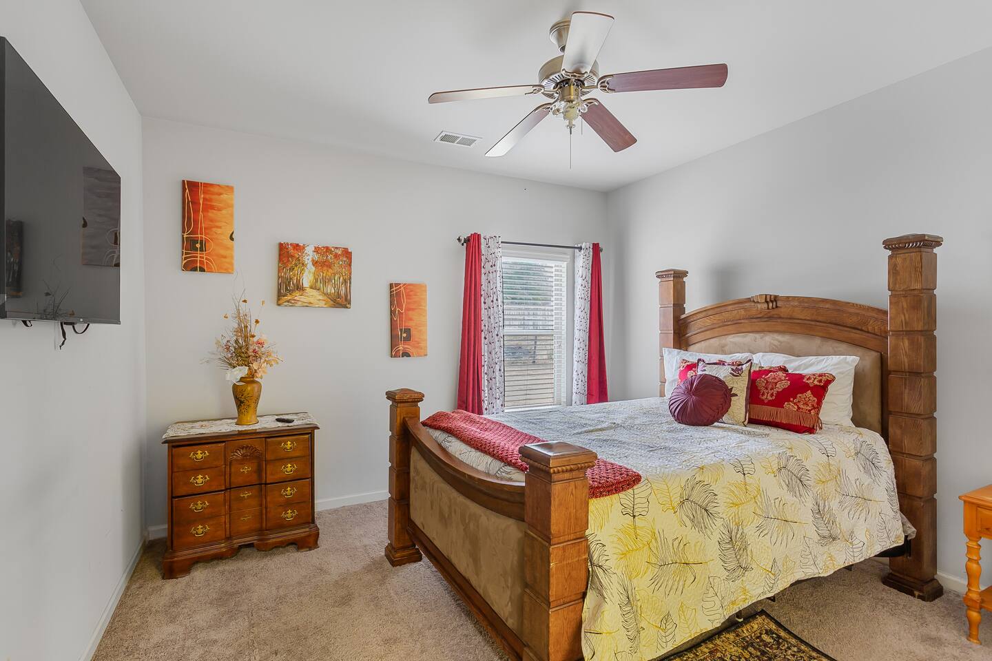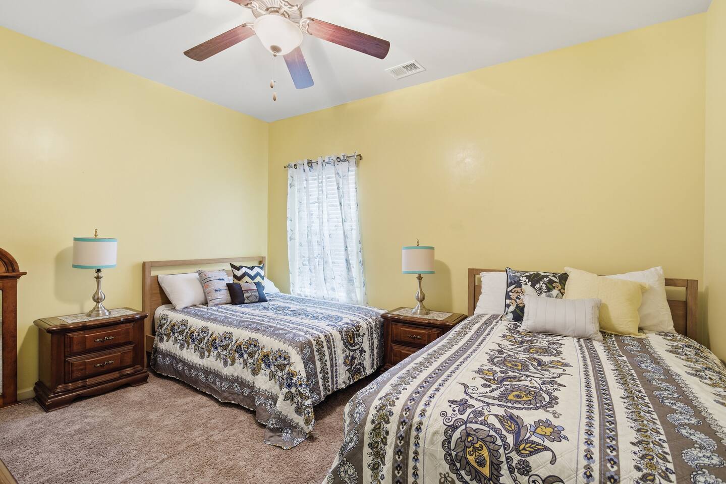 This spacious 6-bedroom, 4-bath home comfortably sleeps up to 18 guests across 12 beds. The primary suite features a king bed and private bath. Upstairs, you’ll find three additional bedrooms with queen beds, plus one room with two full beds (sleeps 4) and a fun bunk room that sleeps 6 with two triple-stack twin bunks—perfect for kids or groups. On the main floor, there’s a queen bedroom and full bath, ideal for guests who prefer fewer stairs. Each room is thoughtfully styled with vibrant, eclectic décor and cozy comfort in mind. Guest do not have garage access.